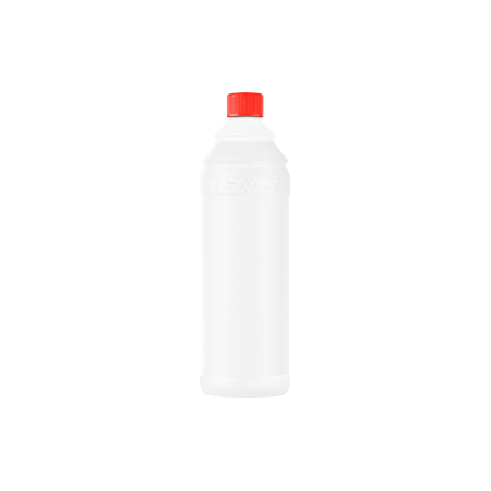 600 bis 1000 ml PE Kunststoff Schrägschulterflasche mit matter Oberfläche und TENZI Druck.