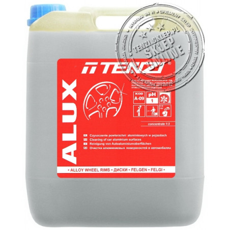 Profi Metallreiniger Extra Stark - Konzentrat: Alux ist die perfekte Wahl für eine zyklische Reinigung von Aluminium, (Leicht)Metall, Edelstahl und verchromten Oberflächen. Das konzentrierte Reinigungsmittel bietet einen effektiven Schutz vor Korrosion und entfernt mühelos Bremsstaub, Flugrost und andere hartnäckige Verschmutzungen. Ideal für Leichtmetallfelgen, Radkappen, verchromte Auspuff Endrohre, Wohnmobile und Wohnwägen und für Aluminium Bordwände von LKW's. Einfache Anwendung: einfach in Wasser mit einem Verhältnis von 1:3 bis 1:5 mischen, die zu reinigende Fläche einsprühen und mit einem Hochdruckreiniger abspülen. Sicherheitshinweis: Bitte tragen Sie bei der Verwendung von Alux geeignete Schutzhandschuhe und schützen Sie Ihre Augen.