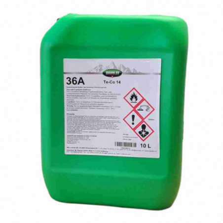 TeCo 14 ist ein basischer (laugig eingestellter) Emulsionsreiniger. Er enthält freie Na-Hydroxyde.
